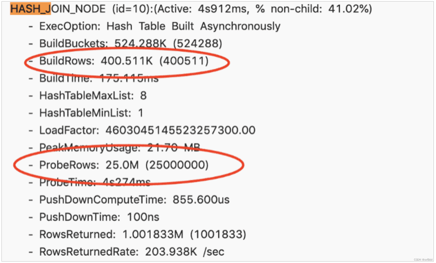 此时再 Check Profile 的时候,左右表的顺序已经调整正确,即右表是大表,左表是小表。基于小表去构建哈希表,开销是很小的,这就是典型的一个利用 Join Reorder 去提升 Join 性能的一个场景