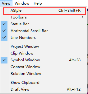 4、此时在SourceInsight中的View菜单下多了个Style的子菜单选项,可以用它来对单个C/C++文件进行格式化。(如下左图)