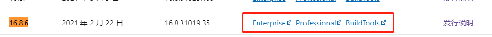 visual Studio 2019 次版本 安装 https://docs.microsoft.com/zh-cn/visualstudio/releases/2019/history#installing-an-earlier-releaseMicroSoft官网的连接地址,我选择的是16.8.6