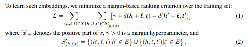 3、关于模型的参数:参数θ是所有实体的向量。设一共有 |E| 个实体和 |R| 个关系,每个实体/关系的向量长度为d维,因此,一共有( |E| + |R| ) * d 个参数。