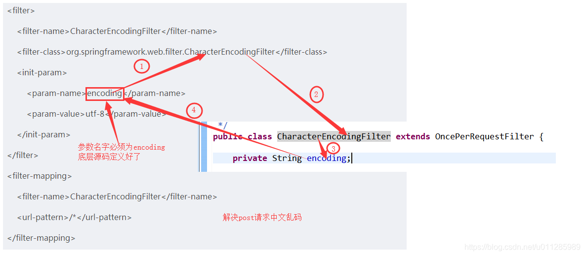 (1)解决post请求乱码问题: 在web.xml中配置一个CharacterEncodingFilter过滤器,设置成utf-8;