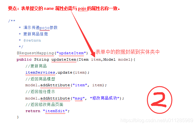 | 答:直接在方法中声明这个对象,SpringMvc就自动会把属性赋值到这个对象里面(参数定义的名字必须与对象里面定义的属性名字一样)。 |