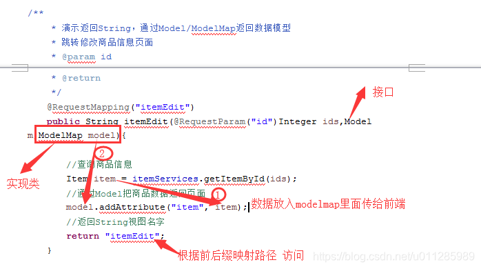 | 答:通过ModelMap对象,可以在这个对象里面调用put方法,把对象加到里面,前台就可以通过el表达式拿到。 |