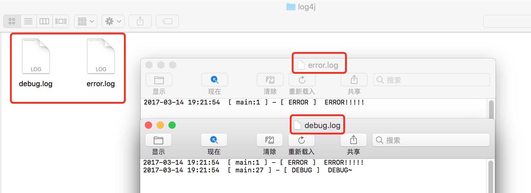 log4j.appender.DDD.File=/Users/tinybye/Documents/log4j/debug.log