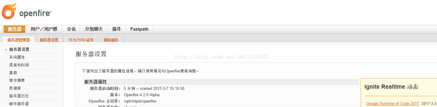 安装成功后,openfire后台是这个样子的: