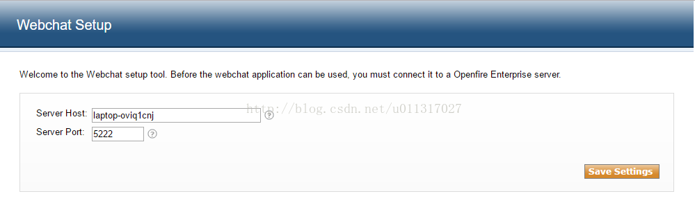 Server Host输入你自己openfire部署服务器的ip,点击save按钮,可能会报: