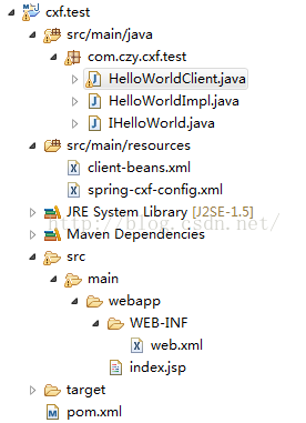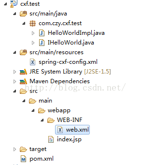 <jaxws:endpoint id="helloWorld" implementor="com.czy.cxf.test.HelloWorldImpl" address="/HelloWorld"/>