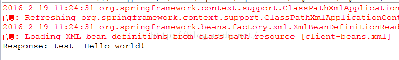 运行HelloWorldClient,出现以下结果,即表示客户端调用成功。