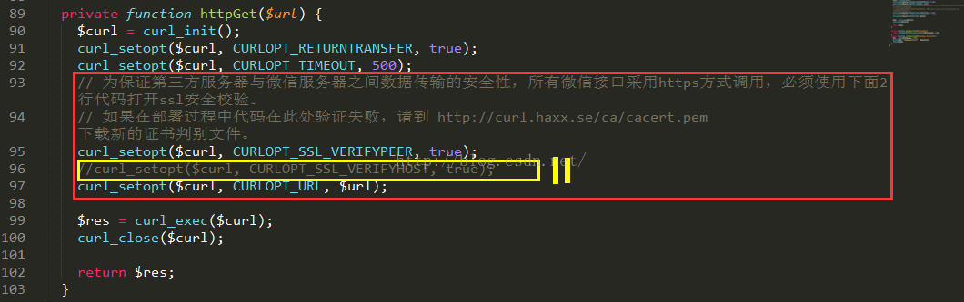 // 为保证第三方服务器与微信服务器之间数据传输的安全性,所有微信接口采用https方式调用,必须使用下面2行代码打开ssl安全校验。