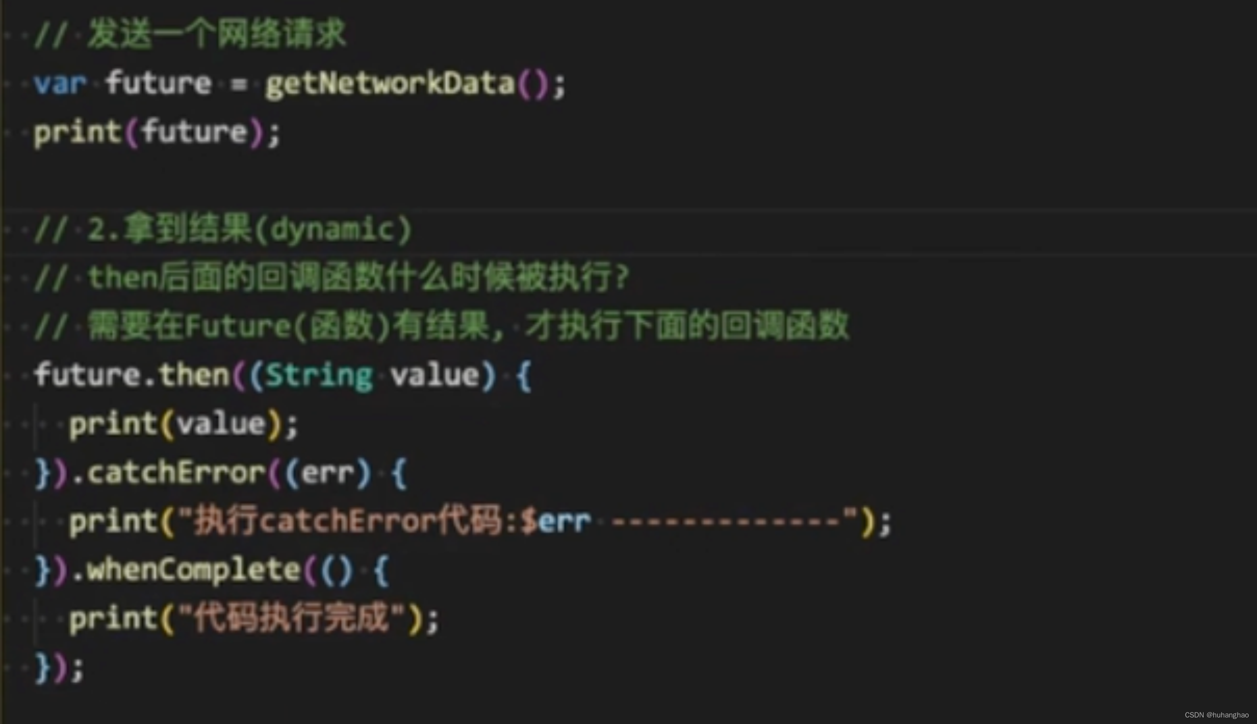 5、dart为单线程,但是可以通过,非阻塞试调用:调用执行之后,当前线程不会停止执行,只需要一段时间来检查一下是否有结果。