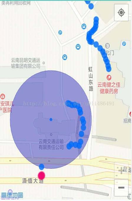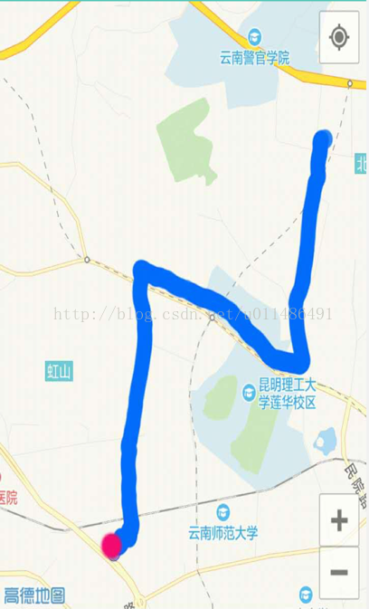 public class ShowLocationActivity extends BaseActivity implements TraceListener { MapView mMapView = null; //初始化地图控制器对象 AMap aMap; ActivityShowLocationBinding mDataBinding; private List<TraceLocation> mListPoint = new ArrayList<>(); private List<TraceLocation> originPosList; private LBSTraceClient lbsTraceClient; private Gson mGson = new Gson(); final int CAR_MAX_SPEED = 22; // 80km/h private Boolean isFirst = true; // 是否是第一次定位点 private TraceLocation weight1 = new TraceLocation(); // 权重点1 private TraceLocation weight2; // 权重点2 private List<TraceLocation> w1TempList = new ArrayList<>(); // w1的临时定位点集合 private List<TraceLocation> w2TempList = new ArrayList<>(); // w2的临时定位点集合 private int w1Count = 0; // 统计w1Count所统计过的点数 private String filterString; private int posCount = 0; private TraceLocation posTraceLocation; private int beginPos = 0; private final Timer timer = new Timer(); TimerTask task = new TimerTask() { private MarkerOptions markerOption; @Override public void run() { runOnUiThread(new Runnable() { @Override public void run() { //处理延时任务 if (posCount == 200) { // 创建跳点 TraceLocation traceLocation = originPosList.get(posCount); LatLng latLng = new LatLng(traceLocation.getLatitude()+0.0160100, traceLocation.getLongitude() - 0.0160000); traceLocation.setLatitude(latLng.latitude); traceLocation.setLongitude(latLng.longitude); // 绘制跳点 markerOption = new MarkerOptions(); markerOption.position(latLng); markerOption.draggable(false);//设置Marker可拖动 markerOption.icon(BitmapDescriptorFactory.fromBitmap(BitmapFactory .decodeResource(getResources(), R.mipmap.icon_red_point))); // 将Marker设置为贴地显示,可以双指下拉地图查看效果 markerOption.setFlat(true);//设置marker平贴地图效果 aMap.addMarker(markerOption); posTraceLocation = traceLocation; } else if (posCount == 201) { // 创建跳点 TraceLocation traceLocation = originPosList.get(posCount); LatLng latLng = new LatLng(traceLocation.getLatitude()+0.0160300, traceLocation.getLongitude() - 0.0160000); traceLocation.setLatitude(latLng.latitude); traceLocation.setLongitude(latLng.longitude); // 绘制跳点 markerOption = new MarkerOptions(); markerOption.position(latLng); markerOption.draggable(false);//设置Marker可拖动 markerOption.icon(BitmapDescriptorFactory.fromBitmap(BitmapFactory .decodeResource(getResources(), R.mipmap.icon_red_point))); // 将Marker设置为贴地显示,可以双指下拉地图查看效果 markerOption.setFlat(true);//设置marker平贴地图效果 aMap.addMarker(markerOption); posTraceLocation = traceLocation; } else if (posCount == 202) { // 创建跳点 TraceLocation traceLocation = originPosList.get(posCount); LatLng latLng = new LatLng(traceLocation.getLatitude()+0.0160500, traceLocation.getLongitude() - 0.0160000); traceLocation.setLatitude(latLng.latitude); traceLocation.setLongitude(latLng.longitude); // 绘制跳点 markerOption = new MarkerOptions(); markerOption.position(latLng); markerOption.draggable(false);//设置Marker可拖动 markerOption.icon(BitmapDescriptorFactory.fromBitmap(BitmapFactory .decodeResource(getResources(), R.mipmap.icon_red_point))); // 将Marker设置为贴地显示,可以双指下拉地图查看效果 markerOption.setFlat(true);//设置marker平贴地图效果 aMap.addMarker(markerOption); posTraceLocation = traceLocation; } else if (posCount == 203) { // 创建跳点 TraceLocation traceLocation = originPosList.get(posCount); LatLng latLng = new LatLng(traceLocation.getLatitude()+0.0160700, traceLocation.getLongitude() - 0.0160000); traceLocation.setLatitude(latLng.latitude); traceLocation.setLongitude(latLng.longitude); // 绘制跳点 markerOption = new MarkerOptions(); markerOption.position(latLng); markerOption.draggable(false);//设置Marker可拖动 markerOption.icon(BitmapDescriptorFactory.fromBitmap(BitmapFactory .decodeResource(getResources(), R.mipmap.icon_red_point))); // 将Marker设置为贴地显示,可以双指下拉地图查看效果 markerOption.setFlat(true);//设置marker平贴地图效果 aMap.addMarker(markerOption); posTraceLocation = traceLocation; } else if (posCount == 204) { // 创建跳点 TraceLocation traceLocation = originPosList.get(posCount); LatLng latLng = new LatLng(traceLocation.getLatitude()+0.0160900, traceLocation.getLongitude() - 0.0160000); traceLocation.setLatitude(latLng.latitude); traceLocation.setLongitude(latLng.longitude); // 绘制跳点 markerOption = new MarkerOptions(); markerOption.position(latLng); markerOption.draggable(false);//设置Marker可拖动 markerOption.icon(BitmapDescriptorFactory.fromBitmap(BitmapFactory .decodeResource(getResources(), R.mipmap.icon_red_point))); // 将Marker设置为贴地显示,可以双指下拉地图查看效果 markerOption.setFlat(true);//设置marker平贴地图效果 aMap.addMarker(markerOption); posTraceLocation = traceLocation; } else { // 绘制点得到正常点 posTraceLocation = originPosList.get(posCount); } Boolean isSHow = filterPos(posTraceLocation); if (isSHow) { // LatLng startLocation_gps = new LatLng(posTraceLocation.getLatitude(), posTraceLocation.getLongitude()); // markerOption.position(startLocation_gps); // markerOption.draggable(false);//设置Marker可拖动 // markerOption.icon(BitmapDescriptorFactory.fromBitmap(BitmapFactory.decodeResource(getResources(), R.mipmap.icon_point))); // // 将Marker设置为贴地显示,可以双指下拉地图查看效果 // markerOption.setFlat(true);//设置marker平贴地图效果 // aMap.addMarker(markerOption); for (int i = beginPos; i < mListPoint.size(); i++) { TraceLocation traceLocation = mListPoint.get(i); LatLng startLocation_gps = new LatLng(traceLocation.getLatitude(), traceLocation.getLongitude()); MarkerOptions markerOption = new MarkerOptions(); markerOption.position(startLocation_gps); markerOption.draggable(false);//设置Marker可拖动 markerOption.icon(Bitmap