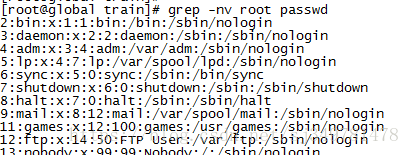 2、不包含root: grep -nv root