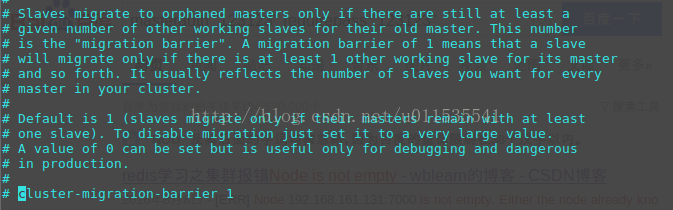 4.cluster-migration-barrier 默认是1,生产环境建议维持默认值,这样才能最大可能的确保集群稳定,除非你不想让集群自动