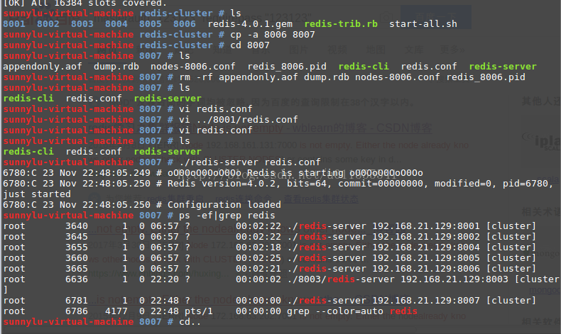 新启一个8007从节点,依然分配给8001(现在8001会有三个从节点)