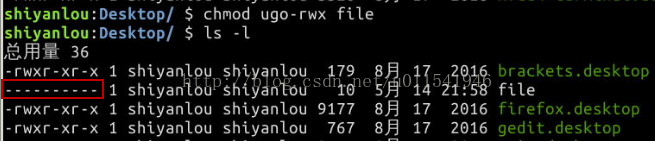其实这个效果,还有chmod a-rwx file也可以实现,a表示all,这里等同u,g,o三组。