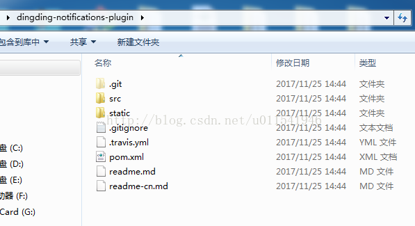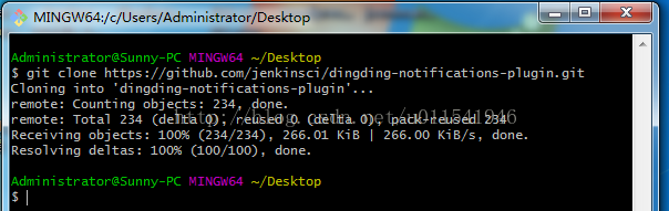 由于我是在桌面打开git bash的,所以下载的项目的文件夹会在桌面生成,文件夹名称叫dingding-notifications-plugin,根据上图来看,源码是成功下载到本地。