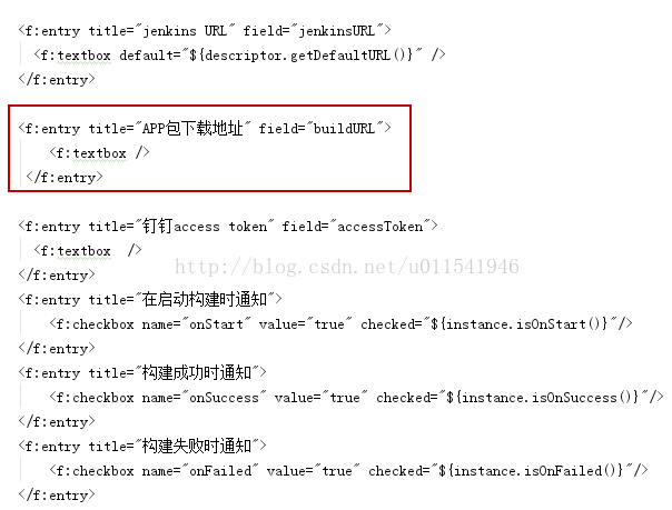 主要就是编辑config.jelly添加前端一个文本输入框,用来接收用户的包下载地址。在上面三个方法和一个借口,插入对应获取下载包地址的方法,并且修改成功状态下打包的json字符串中的url换成打包下载路径的URL。