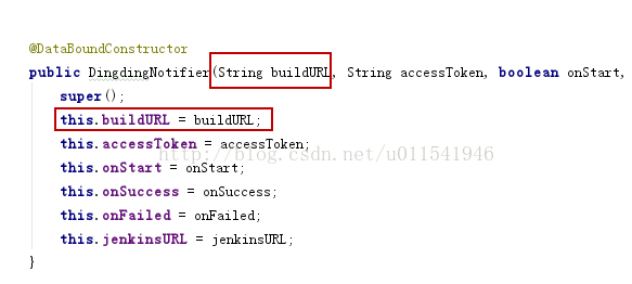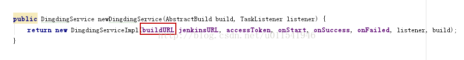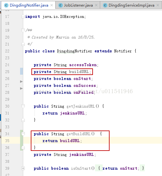 我们可以在DingdingNotifier.java找到accessToken是定义的一个类属性。所以,我们这里也定义一个buildURL的类属性并且添加get方法
