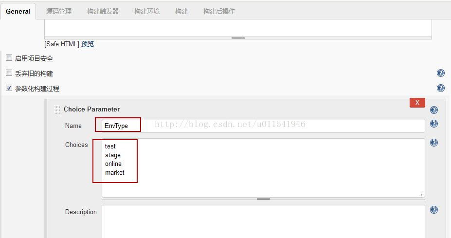 其中 pre-online这个地方是一个变量的值,每次的值取决于打包人员选择的值,这个值来自job的参数化构建