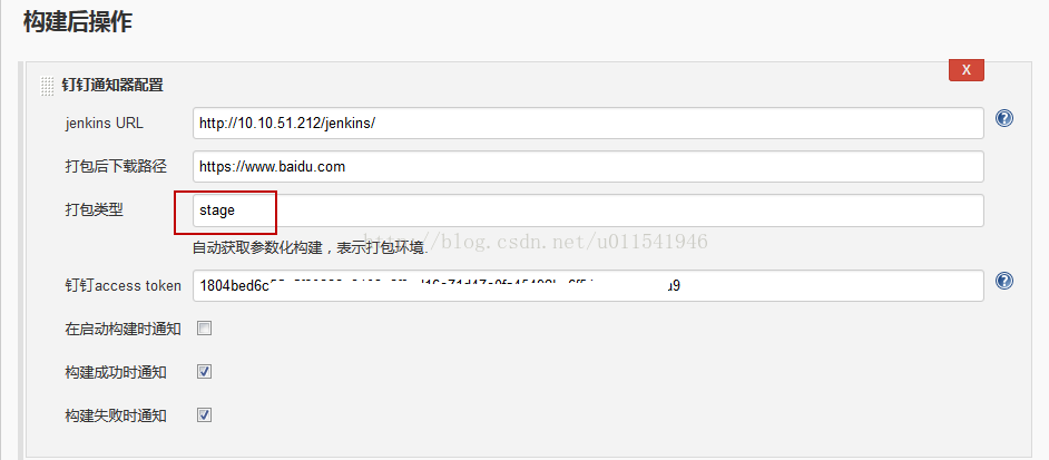 public DingdingServiceImpl(String envType, String jenkinsURL, String buildDownloadURL, String token, boolean onStart, boolean onSuccess, boolean onFailed, TaskListener listener, AbstractBuild build) {