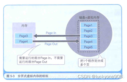 在分页式中,我们把磁盘的内容读出到内存称为Page In,把内存的内容写入带磁盘称之为Page Out。一般情况下,Windows计算机的页大小是4KB。也就是说,把大程序用4KB的页来切分,并以页为单位放入磁盘(虚拟内存)或内存中。