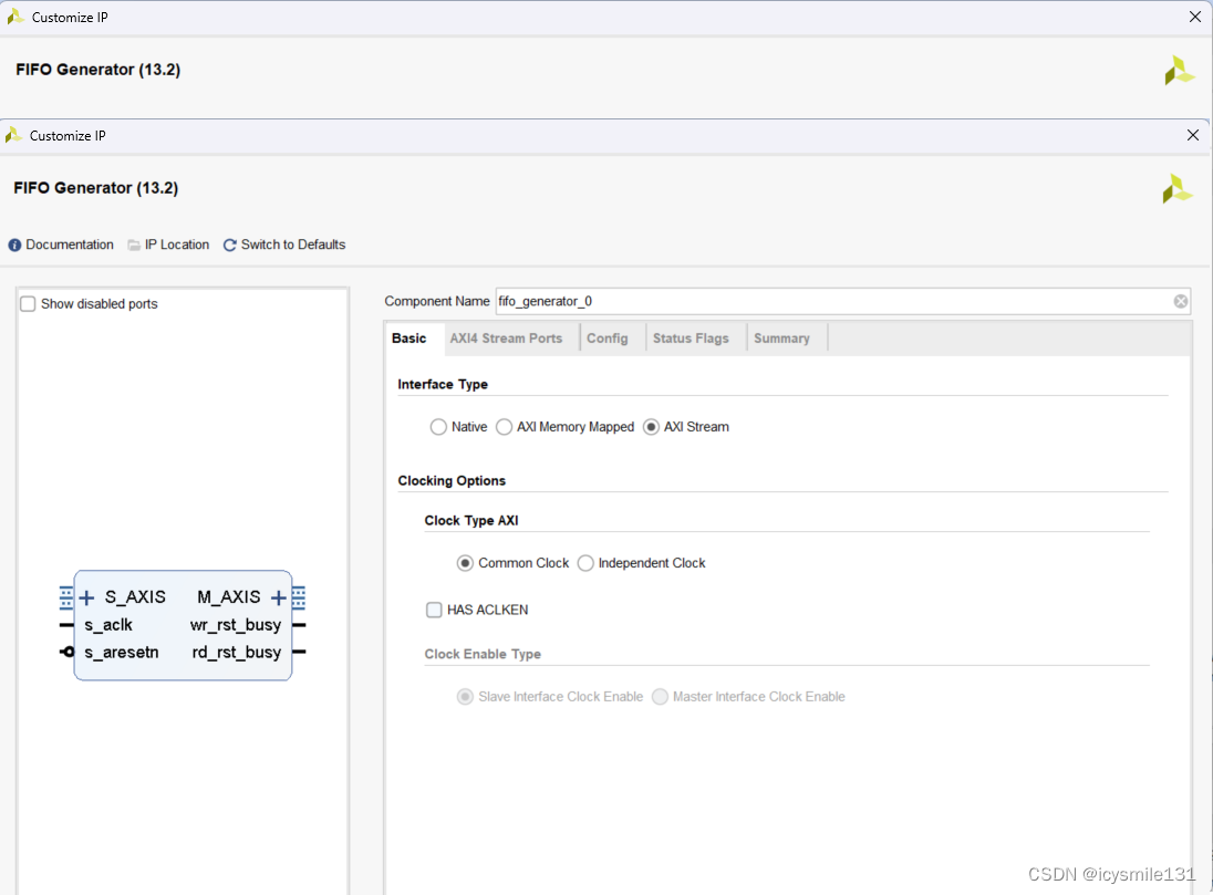 公共时钟(Common Clocks):当在单个时钟域内进行数据缓冲时,可以选择公共时钟选项。这意味着写端口和读端口都使用相同的时钟信号。