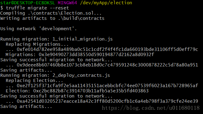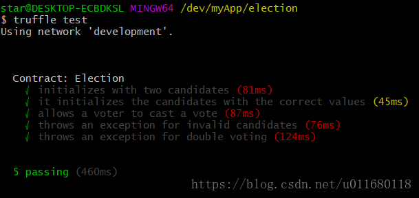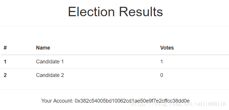 我们首先获取用户选择的candidateId,然后传id和当前账户地址来调用vote方法,这是一个异步调用,完成后,我们显示loader,隐藏content。