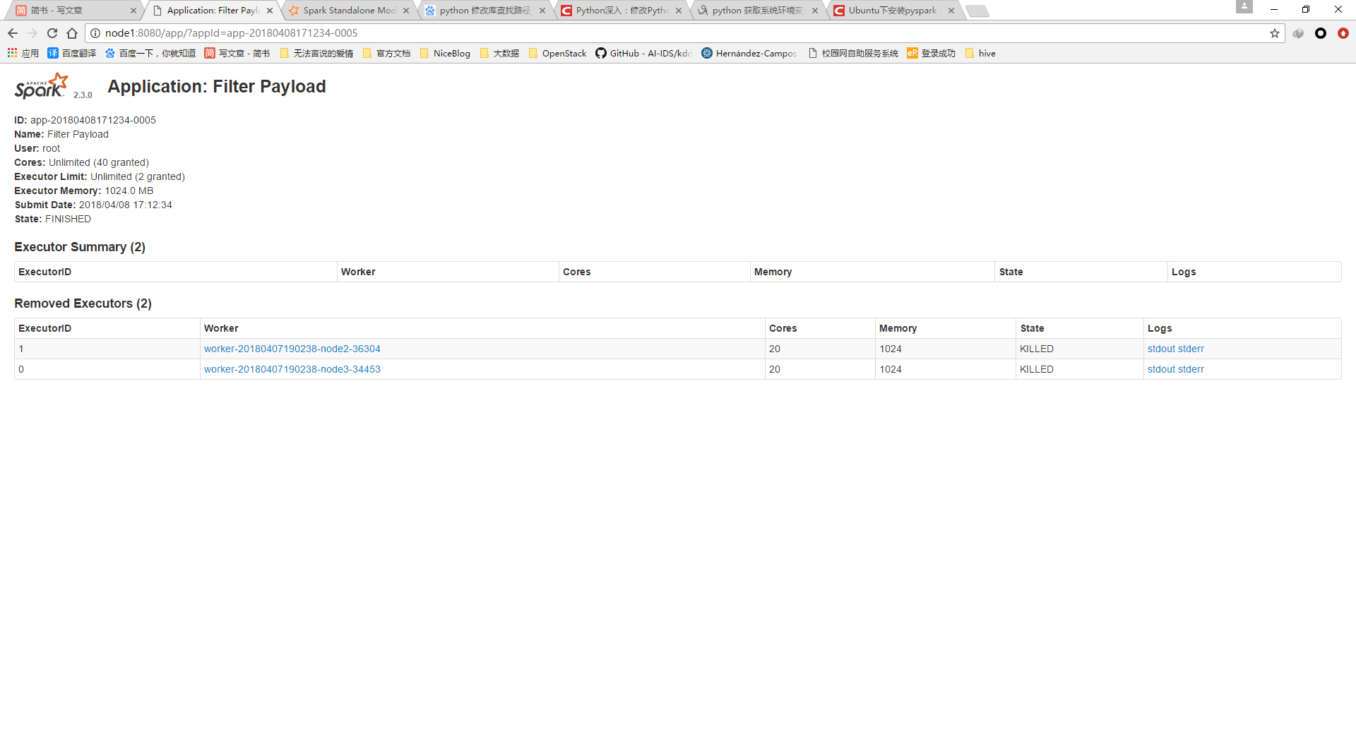 这样执行以后,可以在webui上看到这些个设置,而且输出也就是pyspark的输出。