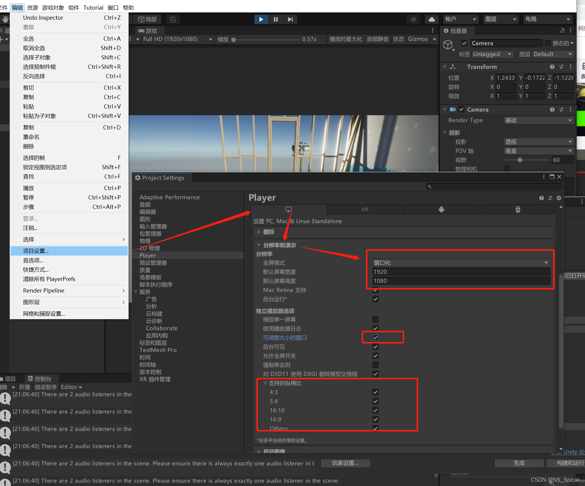 那么接下来,对项目的玩家设置进行设置,达到窗口化缩放目的。