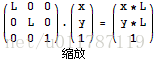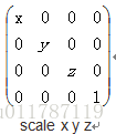 对于缩放操作的话,它有点类似于坐标层次上的平移,只是平移是加法,而缩放是乘法,下面是缩放矩阵: