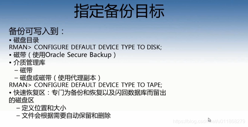 CONFIGURE DEFAULT DEVICE TYPE TO DISK; # default