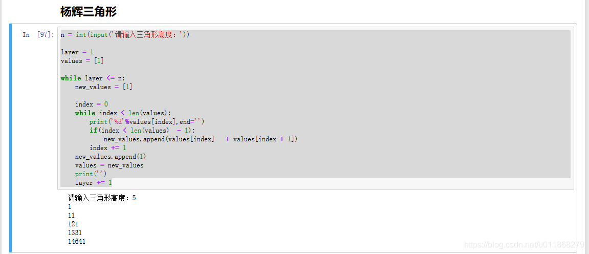 n = int(input('请输入三角形高度:'))