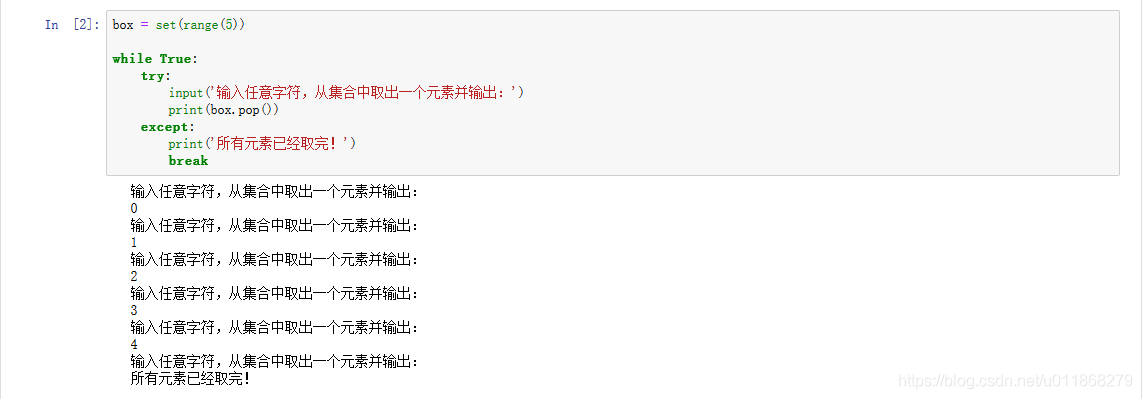 随机删除集合中的某个元素,并且返回被删除的元素。