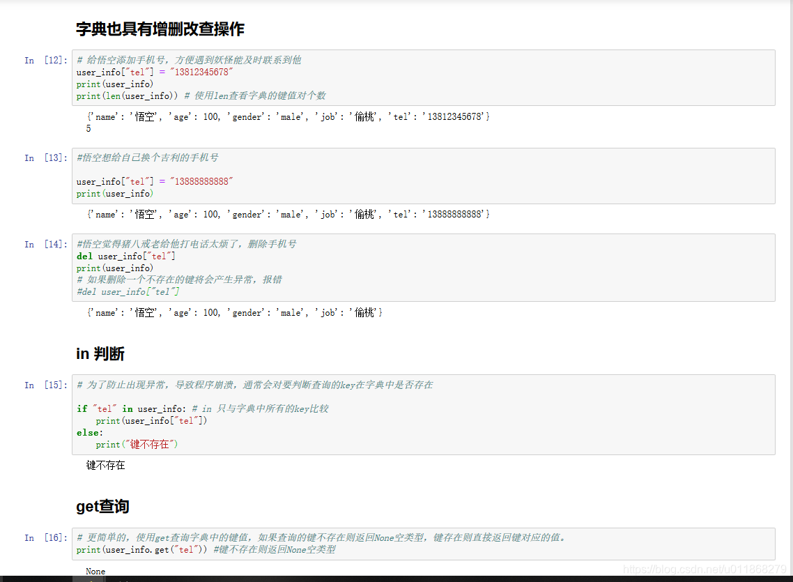 get、keys、values、items、clear