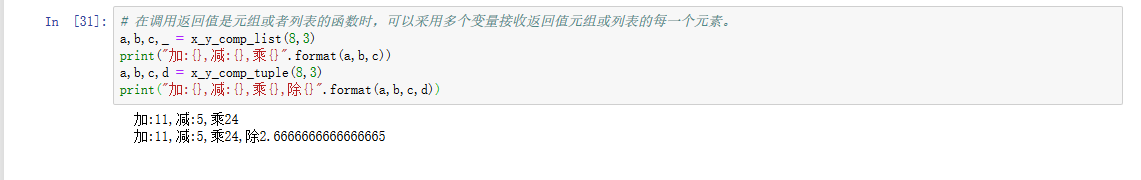 print("加:{},减:{},乘:{},除:{}".format(a,b,c,d))