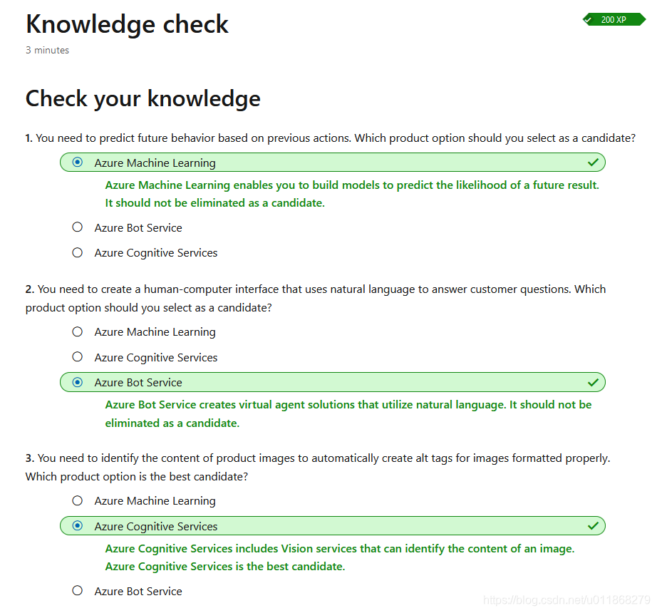 You identified a few product options and their capabilities, including Azure Bot Service, Azure Cognitive Services, and Azure Machine Learning. You analyzed certain decision criteria to help yourself choose one option over another depending on the scenario. Then you applied those decision criteria to three Tailwind Traders initiatives, helping the company find the best service option for each scenario.