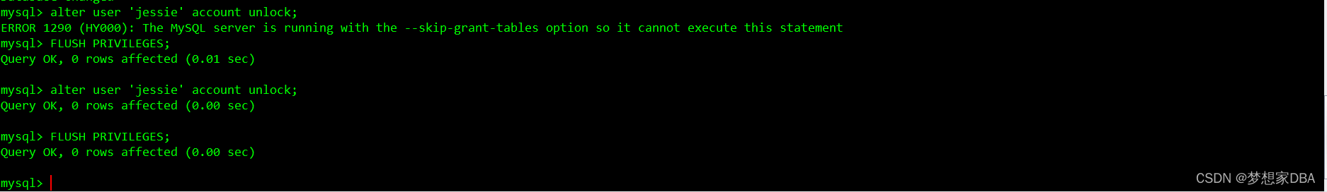 ERROR 3118 (HY000): Access denied for user 'jessie'@'localhost'. Account is locked.