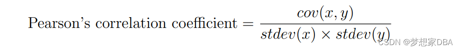 The Pearson’s correlation coefficient (named for Karl Pearson) can be used to summarize the strength of the linear relationship between two data samples. The Pearson’s correlation coefficient is calculated as the covariance of the two variables divided by the product of the standard deviation of each data sample. It is the normalization of the covariance between the two variables to give an interpretable score.