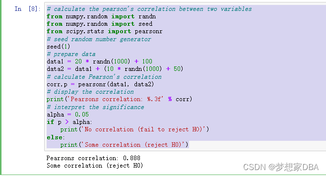 corr,p = pearsonr(data1, data2)