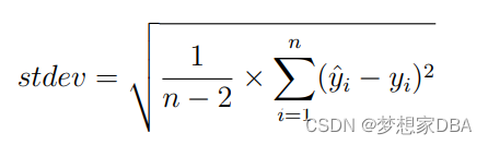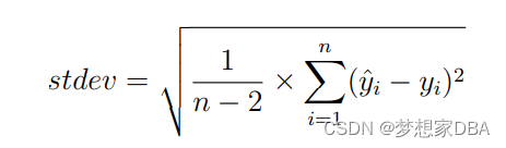 stdev = sqrt(1/(len(y)-2) * sum_errs)