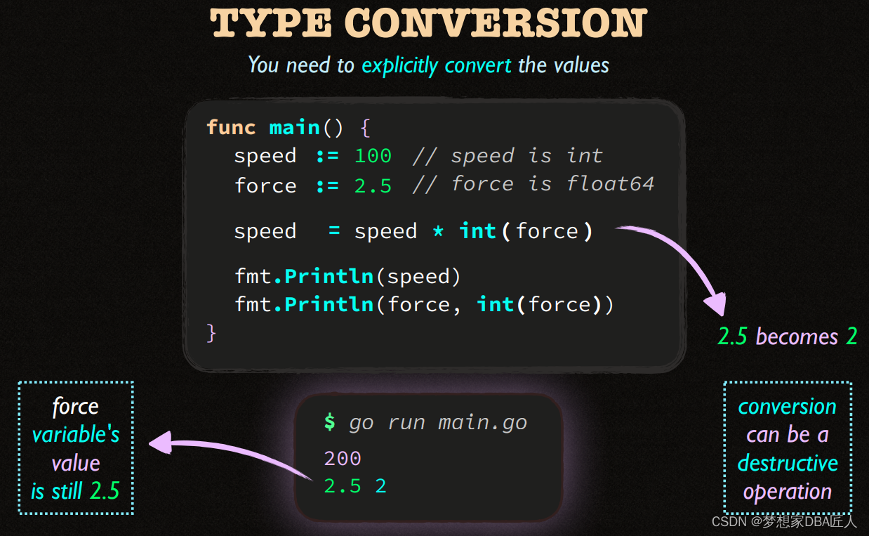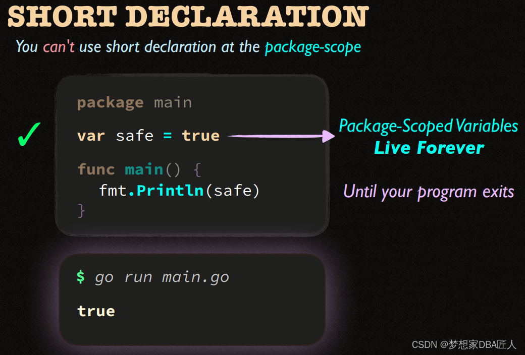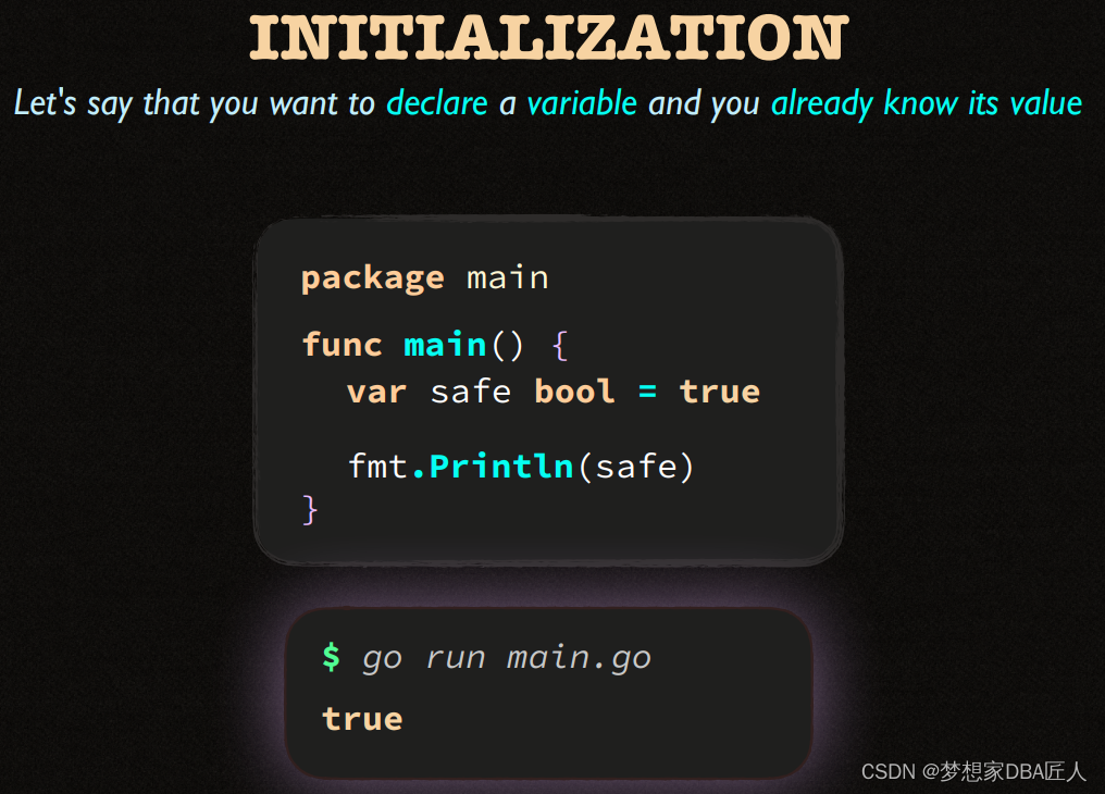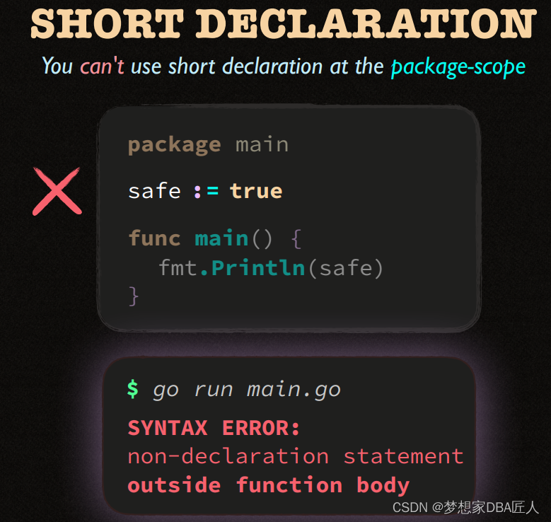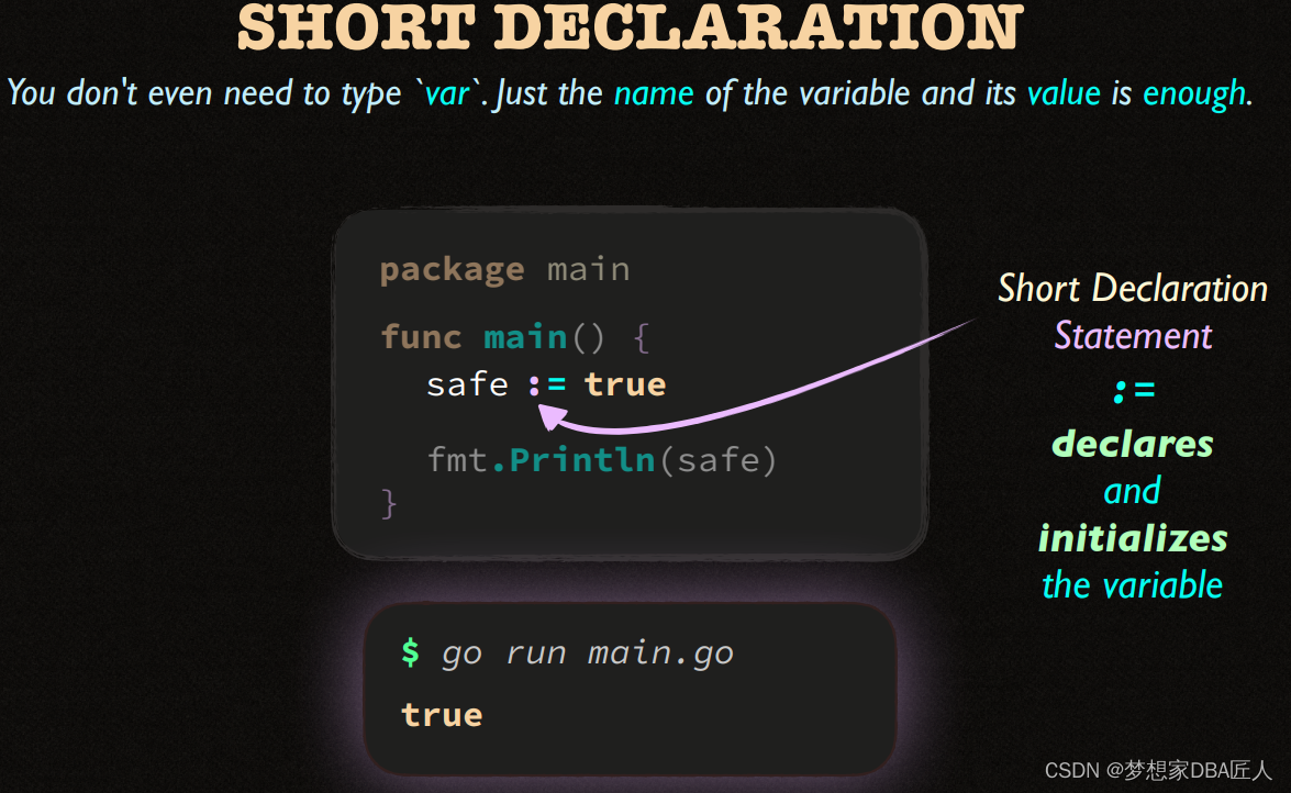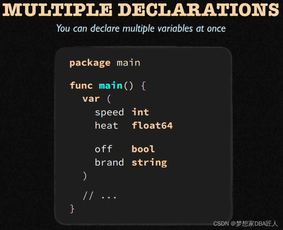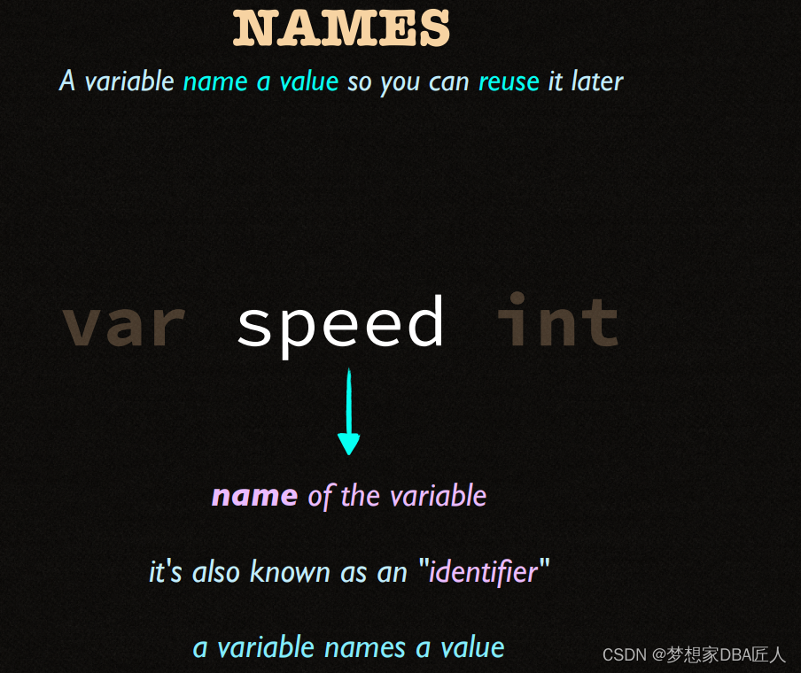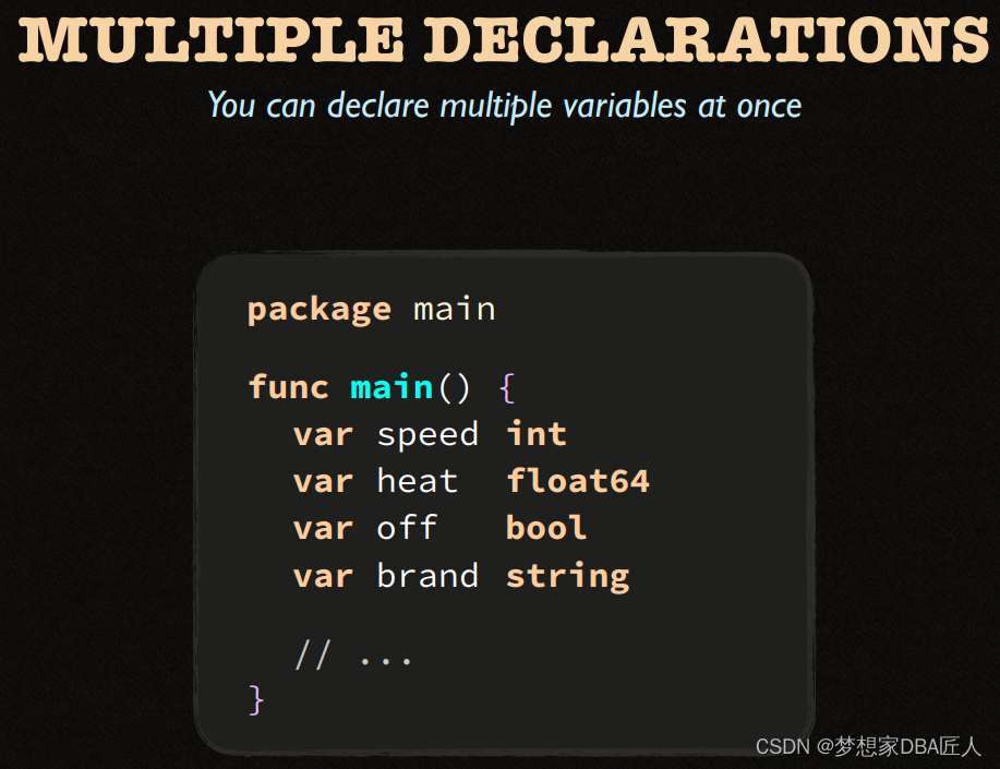 该文展示了两个Go语言代码片段,第一个例子中,使用`path.Split`函数从路径字符串css/main.css中提取了文件名。第二个例子则是一个简单的变量声明,展示了如何声明一个整型变量`spped`。此外,文中还提到了命名规则的概念,暗示可能在讨论Go语言的命名规范。