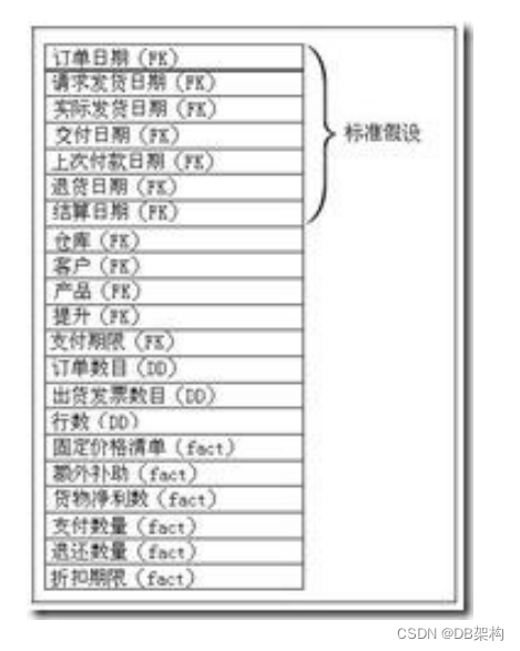 每个事实表的粒度是一个事件量测。在某些情况下,事件可以发生,但是没有具体的测量值。例如一个 事实表用来记录交通事故事件。每个事件的发生是无可质疑的,维度设计是强制性且非常直接的。