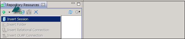 You can also insert a new session, which is not already defined in the Repository resources view. To insert a session, click on + sign.