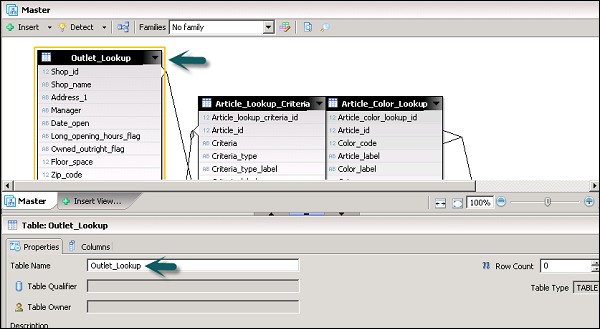 The Data Foundation view pane contains tables and joins. Master contains tables and joins that are connected with each other in a logical manner.