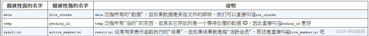 表1-1 描述性弱和描述性强的变量名示例