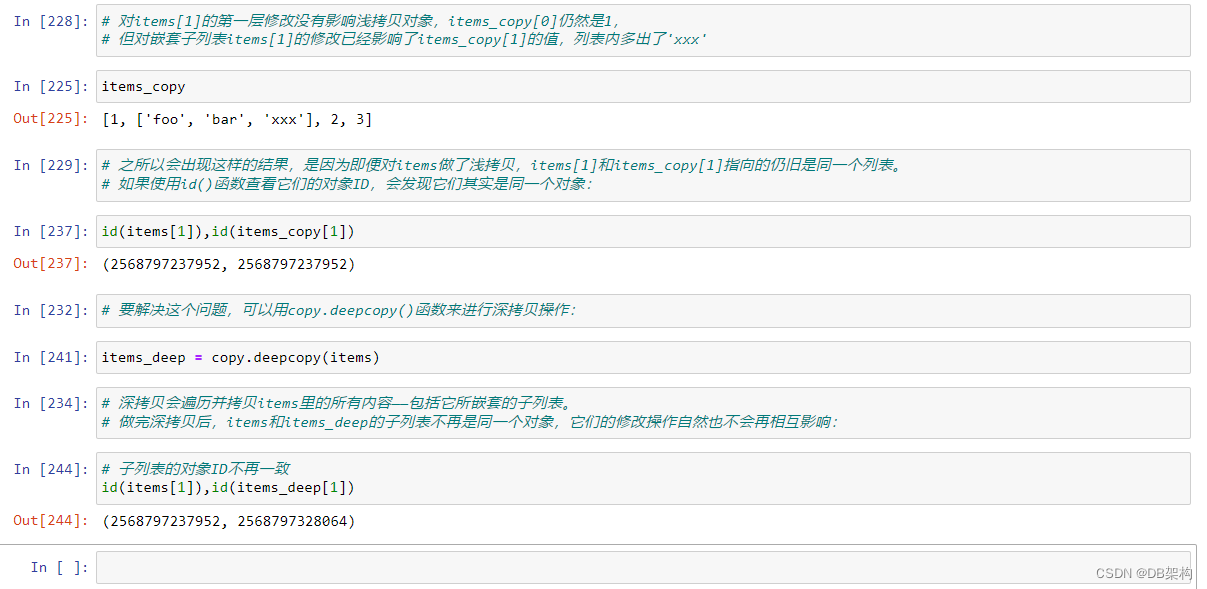 文章详细介绍了Python中的四种主要内置容器类型:列表(list)的创建和可变性,元组(tuple)的不可变特性,字典(dict)的键值对操作和有序性,以及集合(set)的无序性和去重功能。此外,还讨论了对象的可哈希性,深拷贝和浅拷贝的概念。
