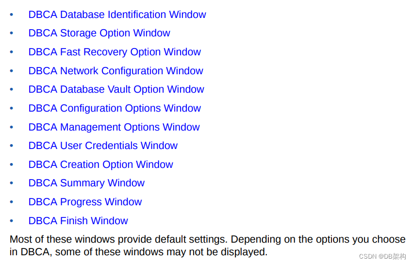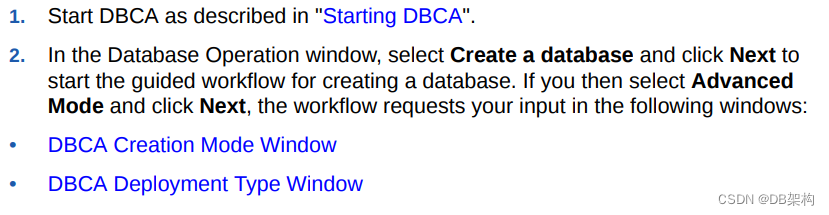 Database Configuration Assistant (DBCA) enables you to create an Oracle database by following a step-by-step guided workflow.