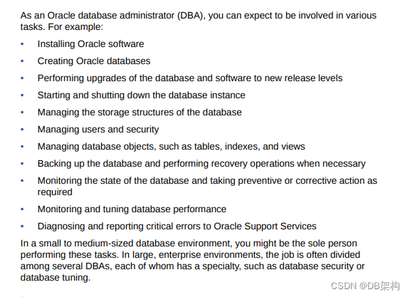 1.Common Oracle database administrator (DBA) task: