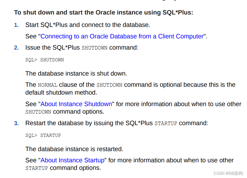 1. Start the database instance.