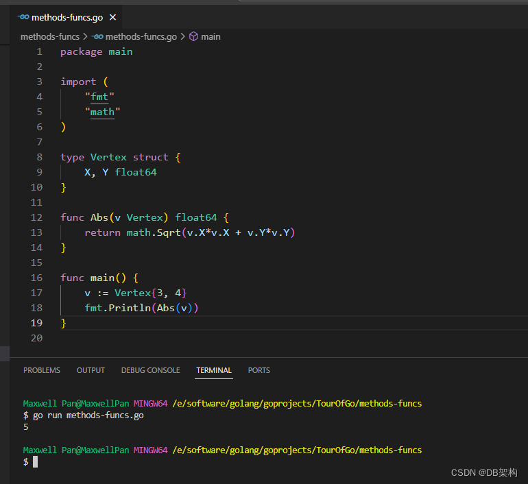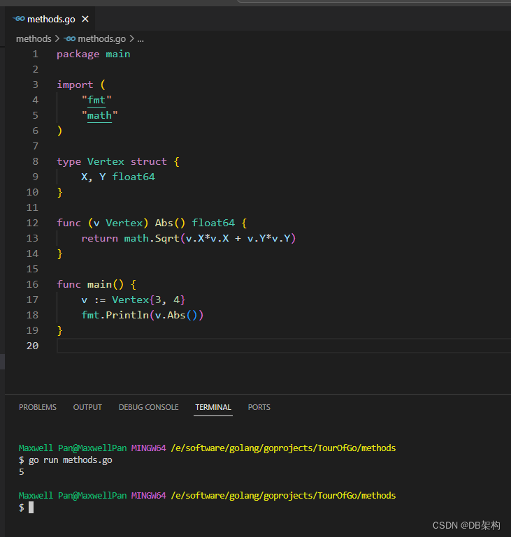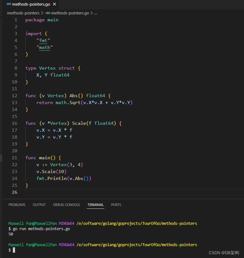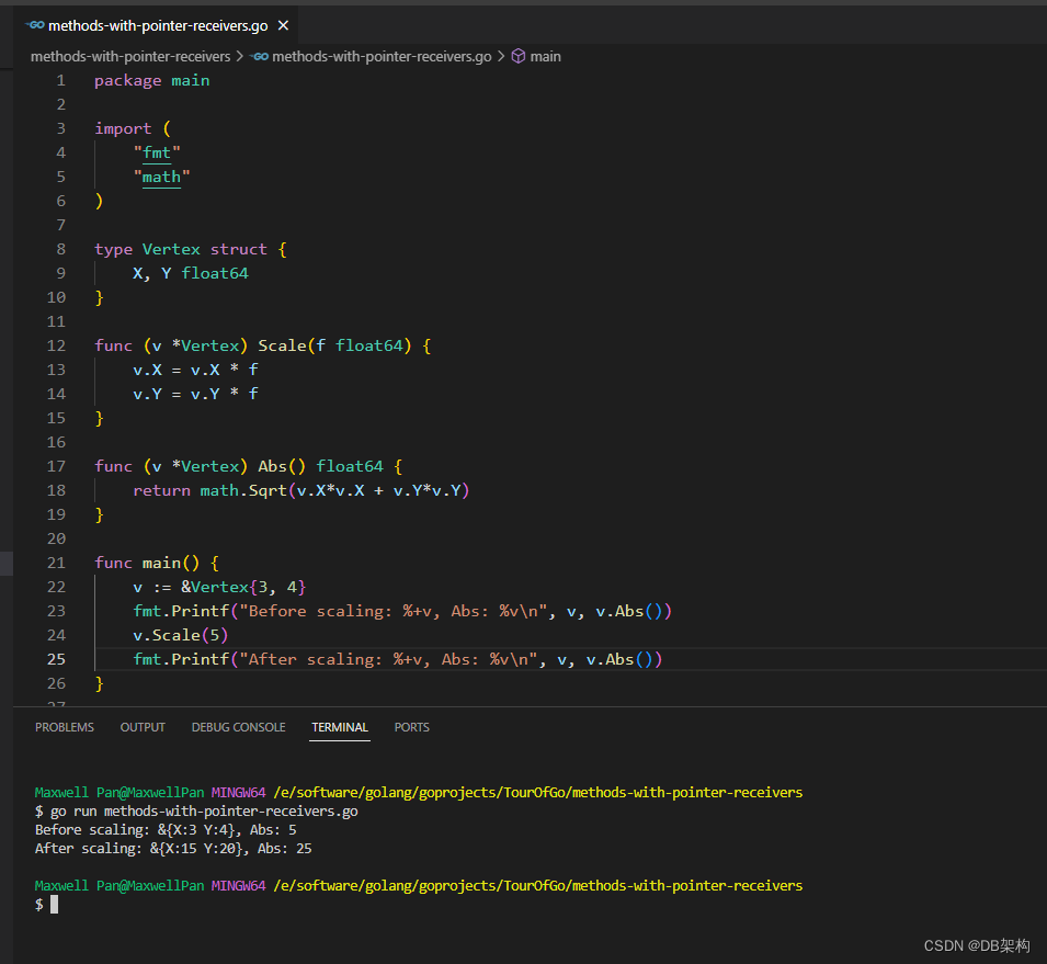 In this example, both Scale and Abs are methods with receiver type *Vertex, even though the Abs method needn't modify its receiver.